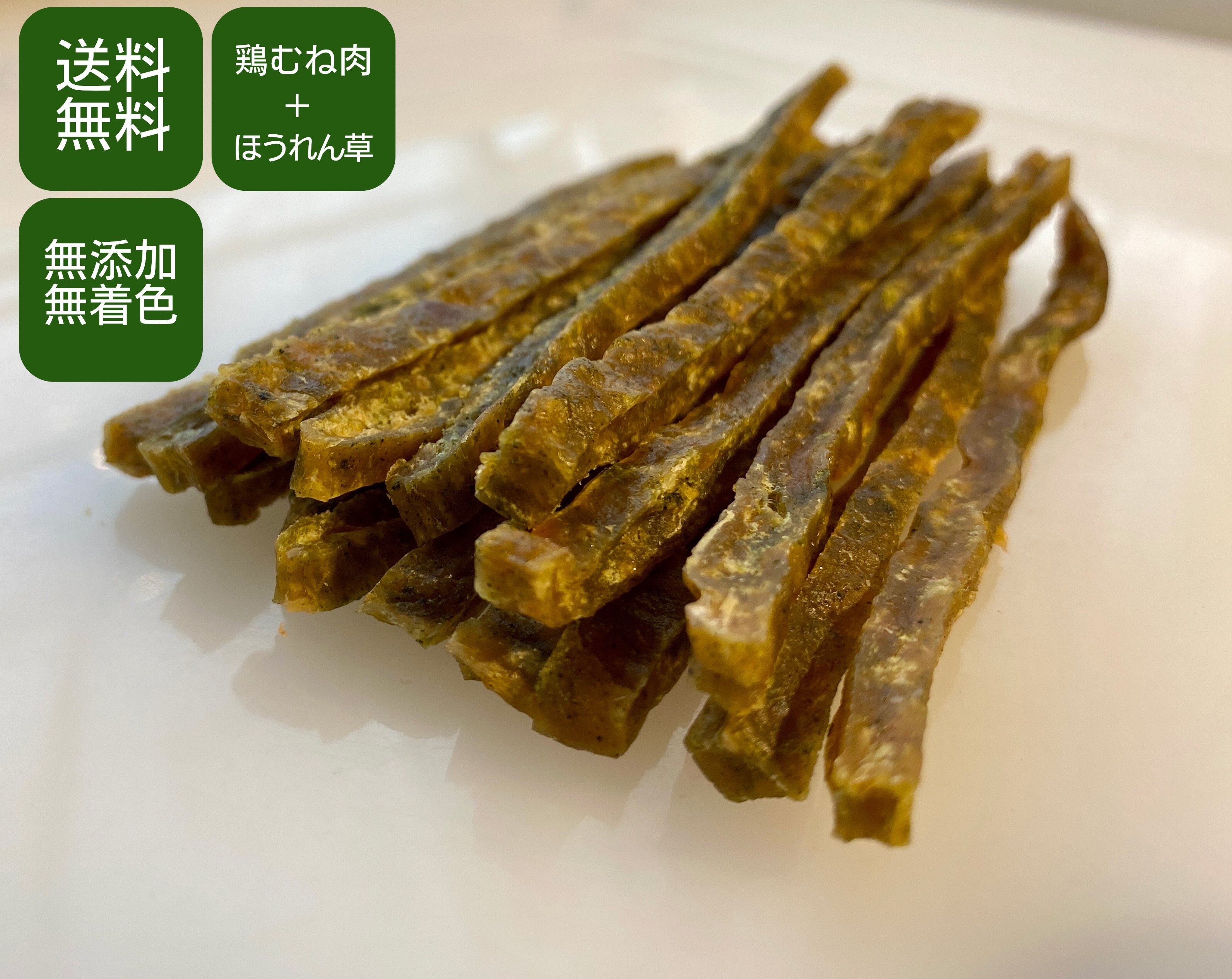 犬用 無添加 無着色 チキンジャーキー (ほうれん草) 120g むね肉ジャーキー 鶏肉 犬用おやつ 犬しつけ