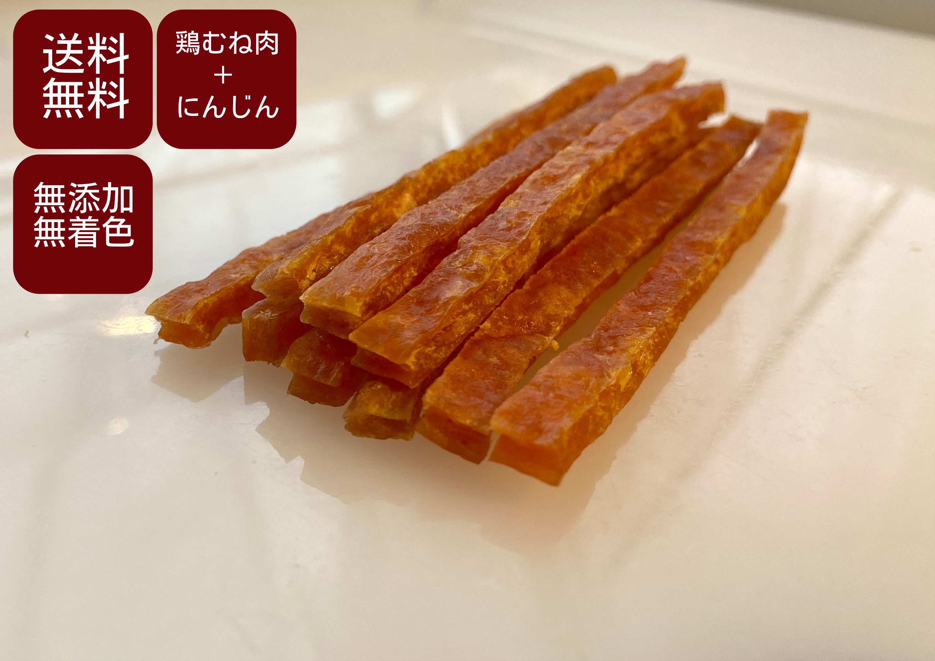 犬用 無添加 無着色 チキンジャーキー (にんじん) 120g むね肉ジャーキー 鶏肉 犬用おやつ 犬しつけ