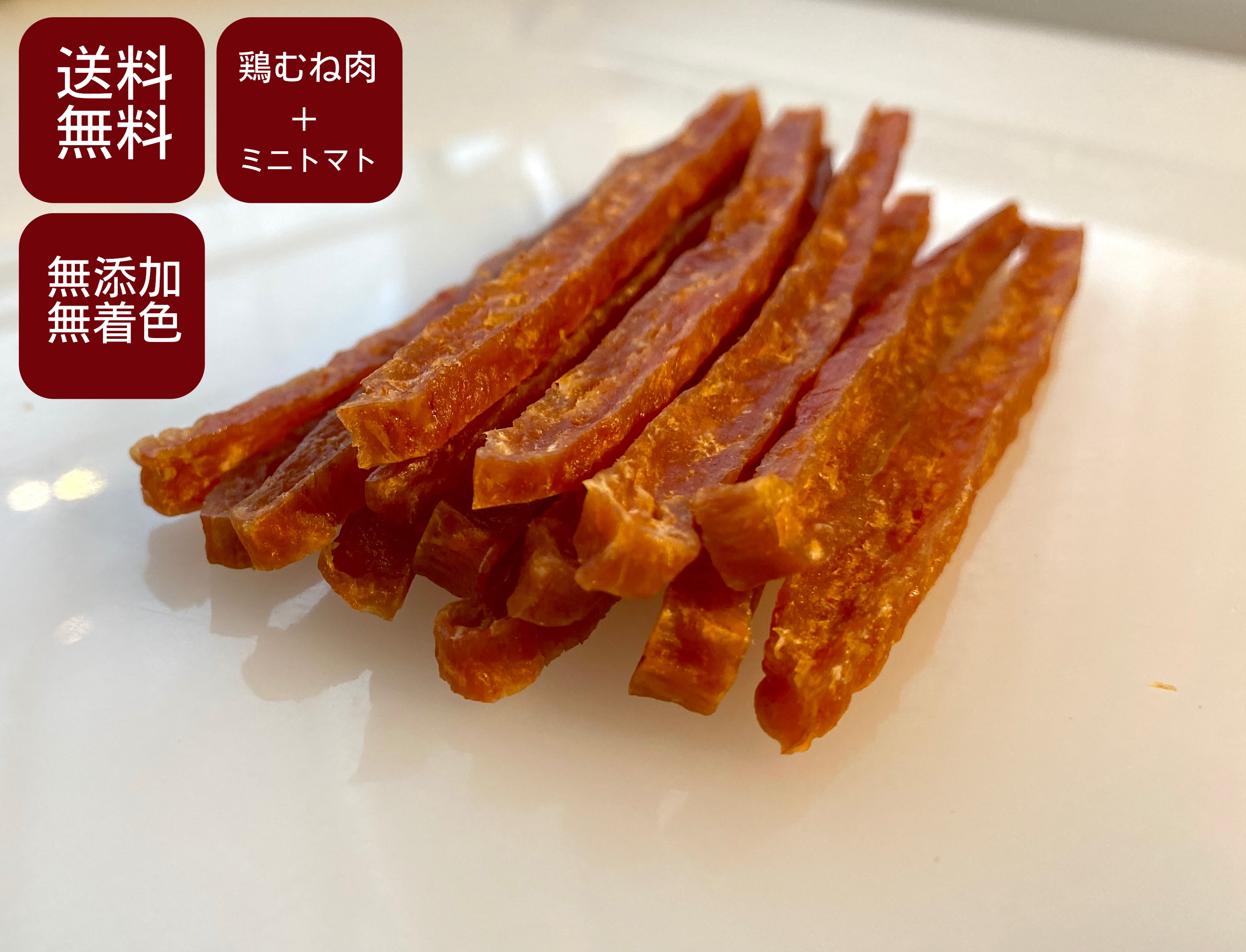 犬用 無添加 無着色 チキンジャーキー (トマト) 120g むね肉ジャーキー 鶏肉 犬用おやつ 犬しつけ