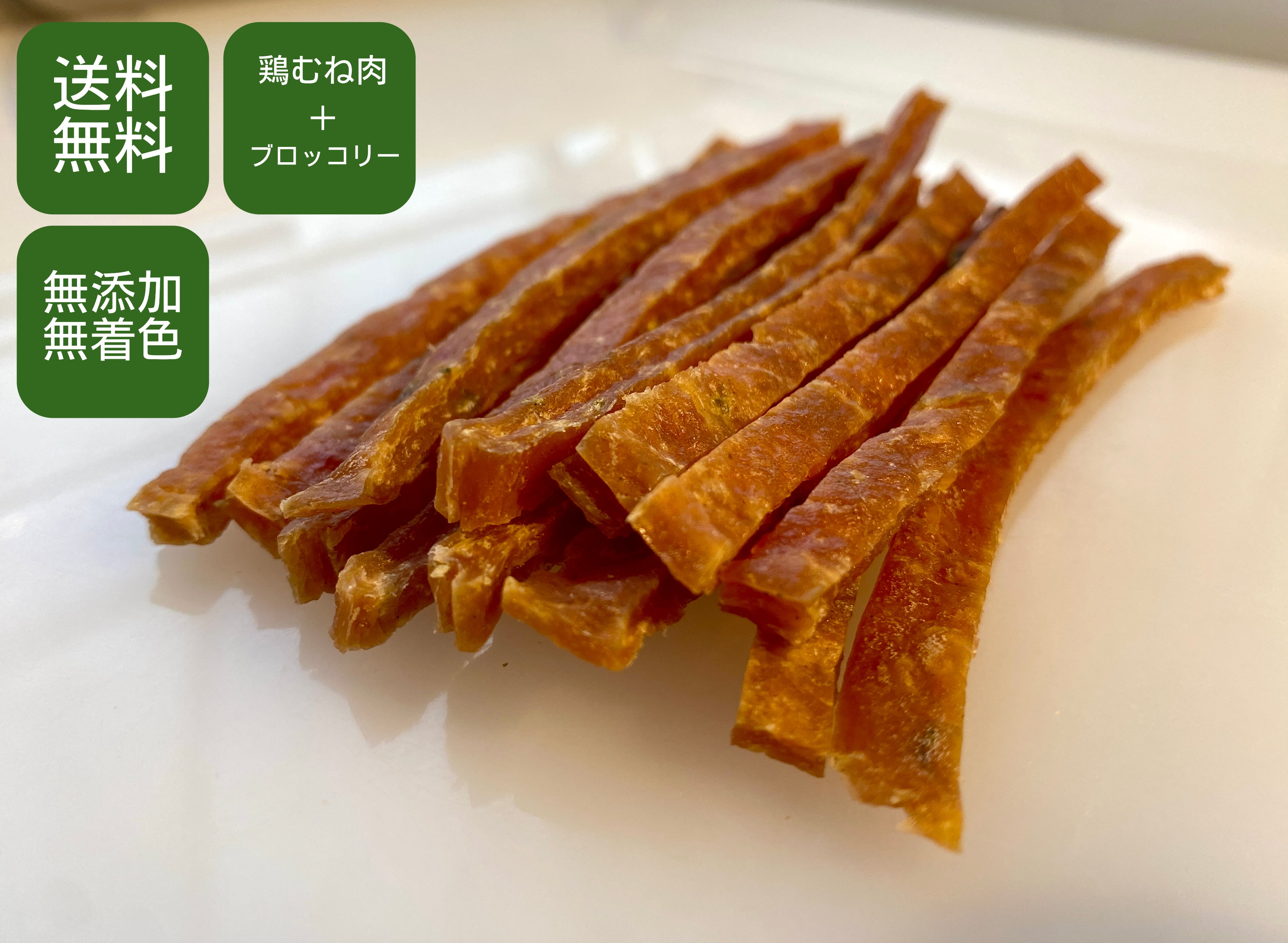 犬用 無添加 無着色 チキンジャーキー (ブロッコリー) 600g むね肉ジャーキー 鶏肉 犬用おやつ 犬しつけ