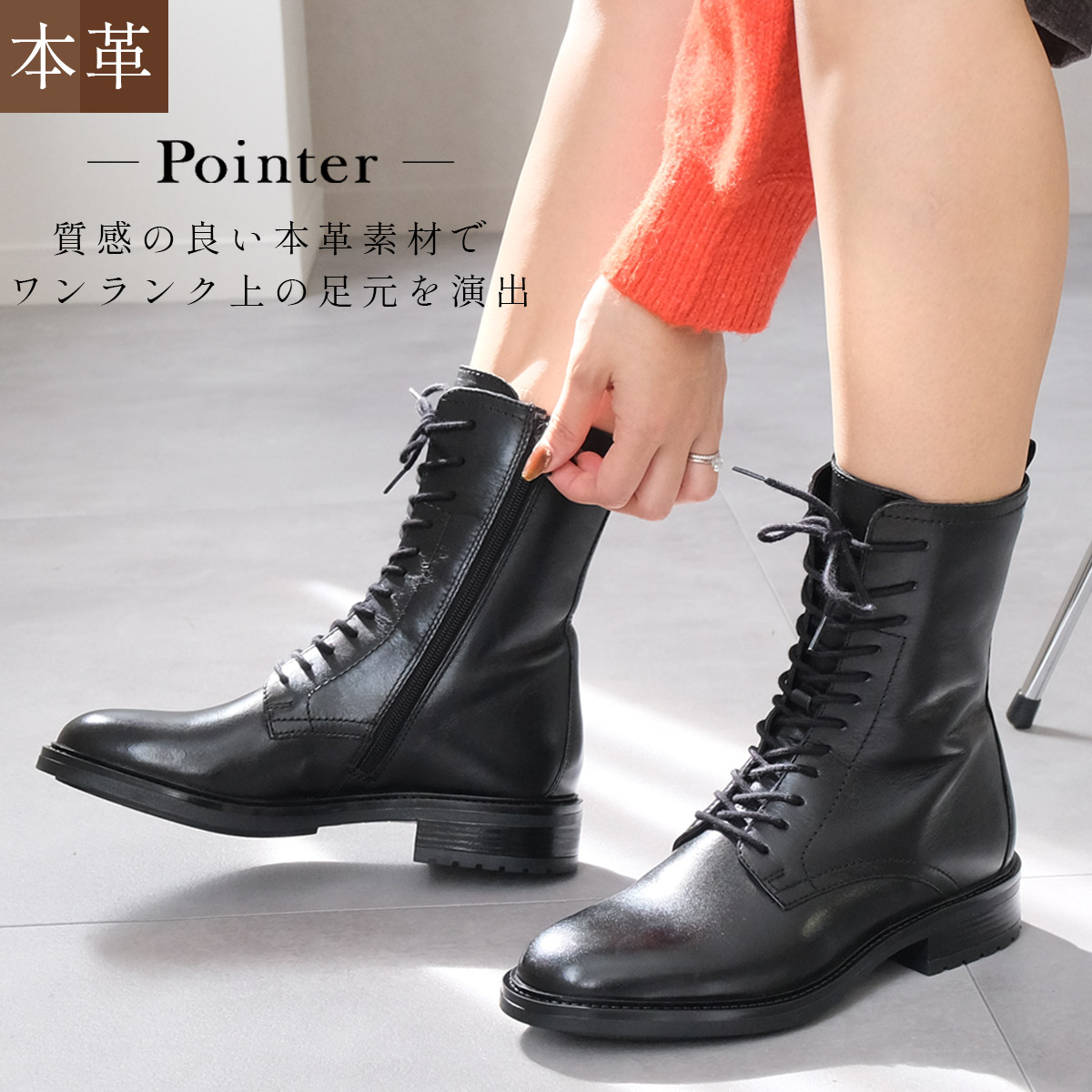 脚長効果バツグン!プレーンなミドル丈レースアップブーツ。