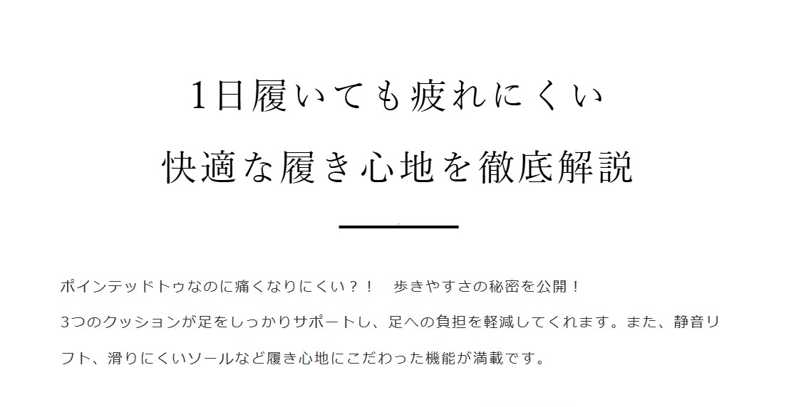 脚長&スタイルアップ効果抜群。クッション入りインソールで