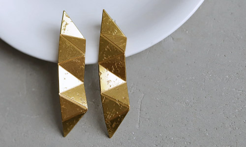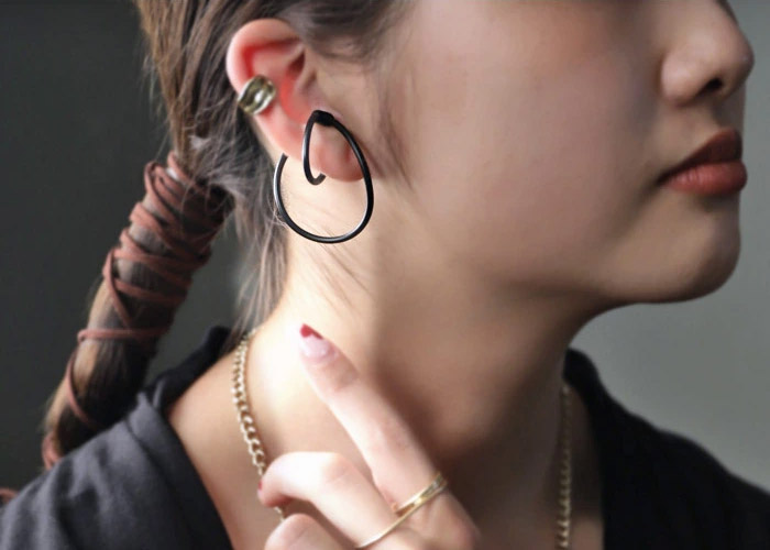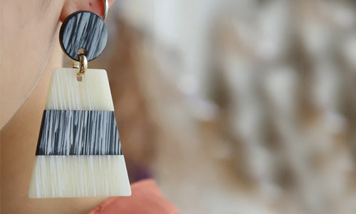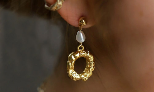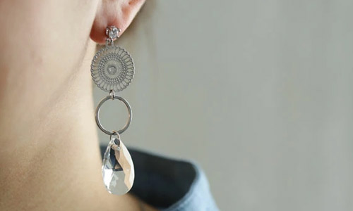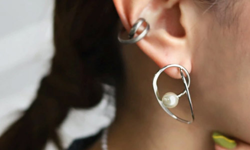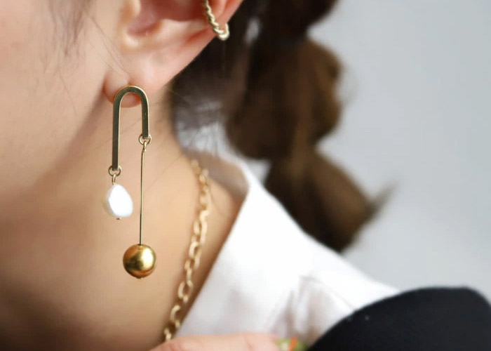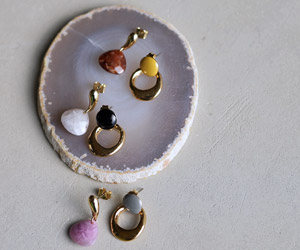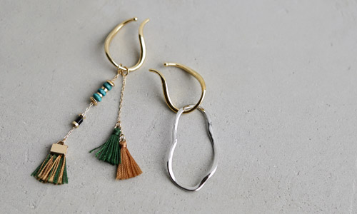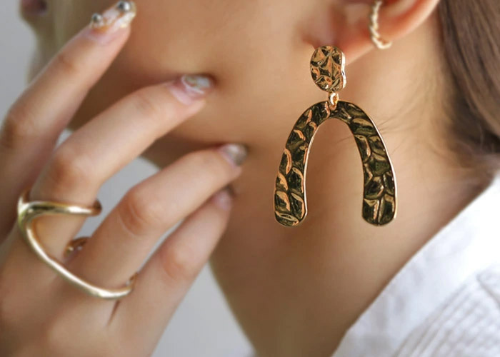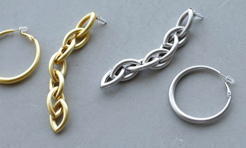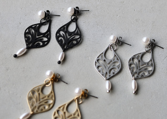 目を惹くデザインの大ぶりアクセは 見るだけで心ときめく。 主役級の存在感でシンプルな装いに映える。 |