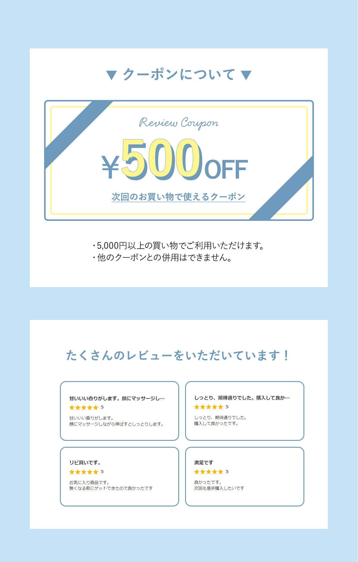 ※クーポンは一つの注文番号につき一枚のみ配布いたします。