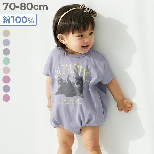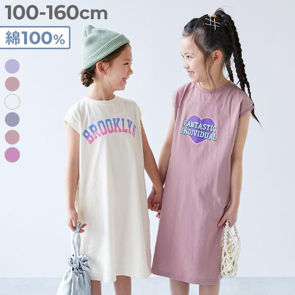 綿100% デビラボ ガールズ フレンチラグラン プリント半袖Tシャツ