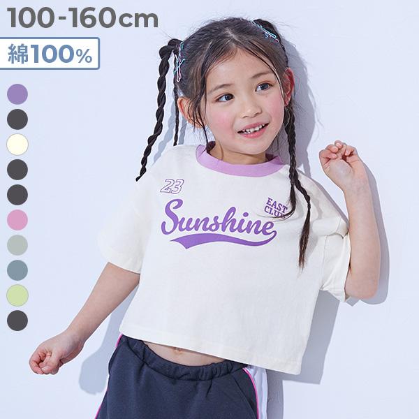 綿100% デビラボ ガールズ クロップド丈 プリント半袖Tシャツ
