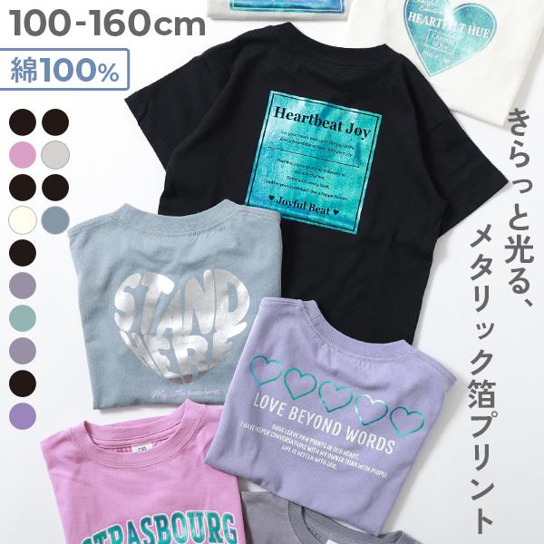 綿100% デビラボ×【きらっとメタリック】 ガールズ BOXシルエット プリント半袖Tシャツ