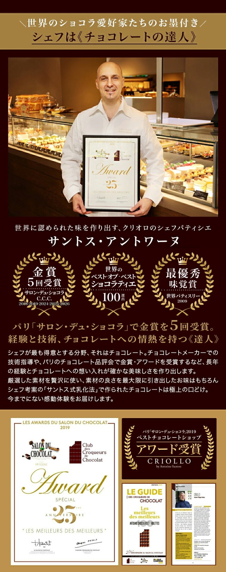 サロン・デュ・ショコラ・パリCCC金賞(2017年、2018年)&アワード(2017年)受賞