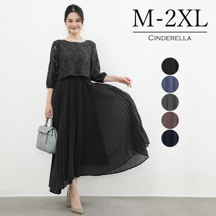 【M-2XL】レーストップスがエレガントな切替えドレス。