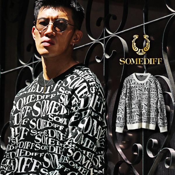 ジャガード総柄ロゴニット