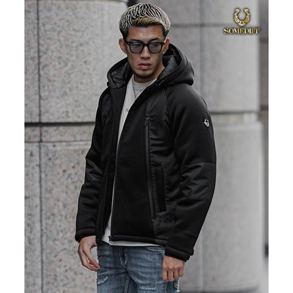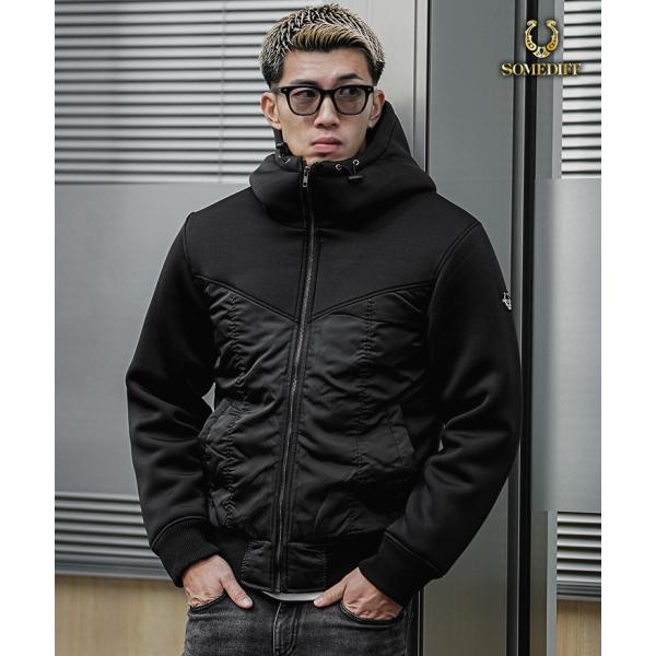 ダイバーボンディング異素材切替フーテッドジャケット