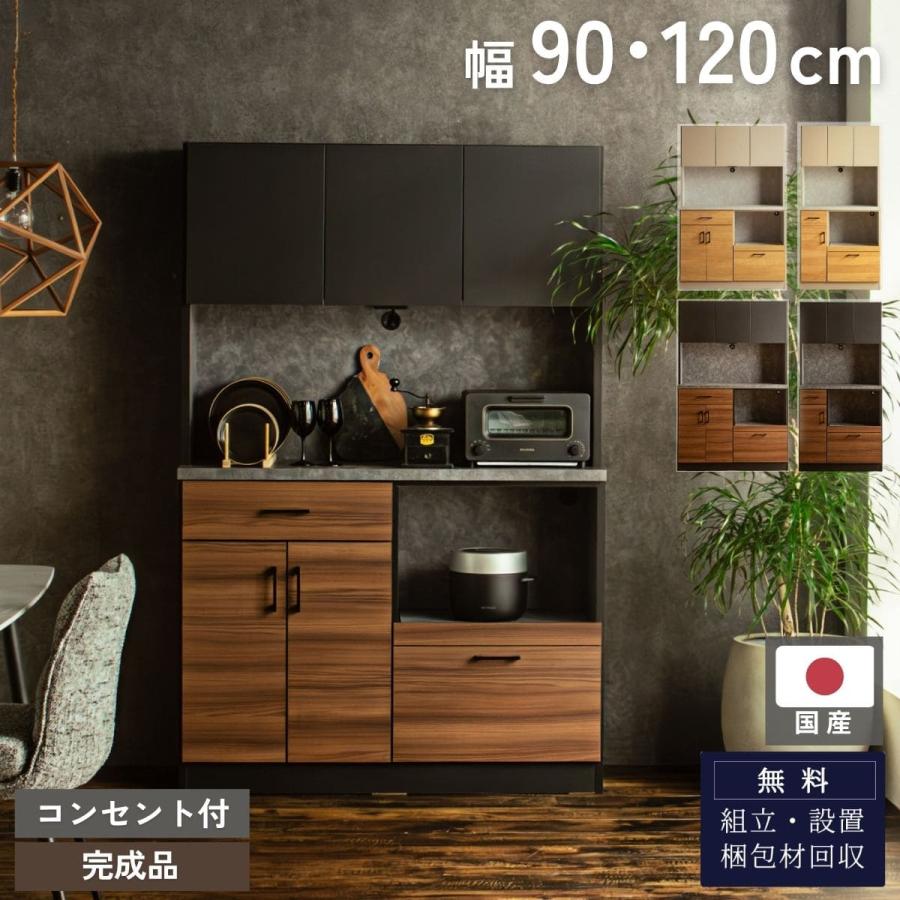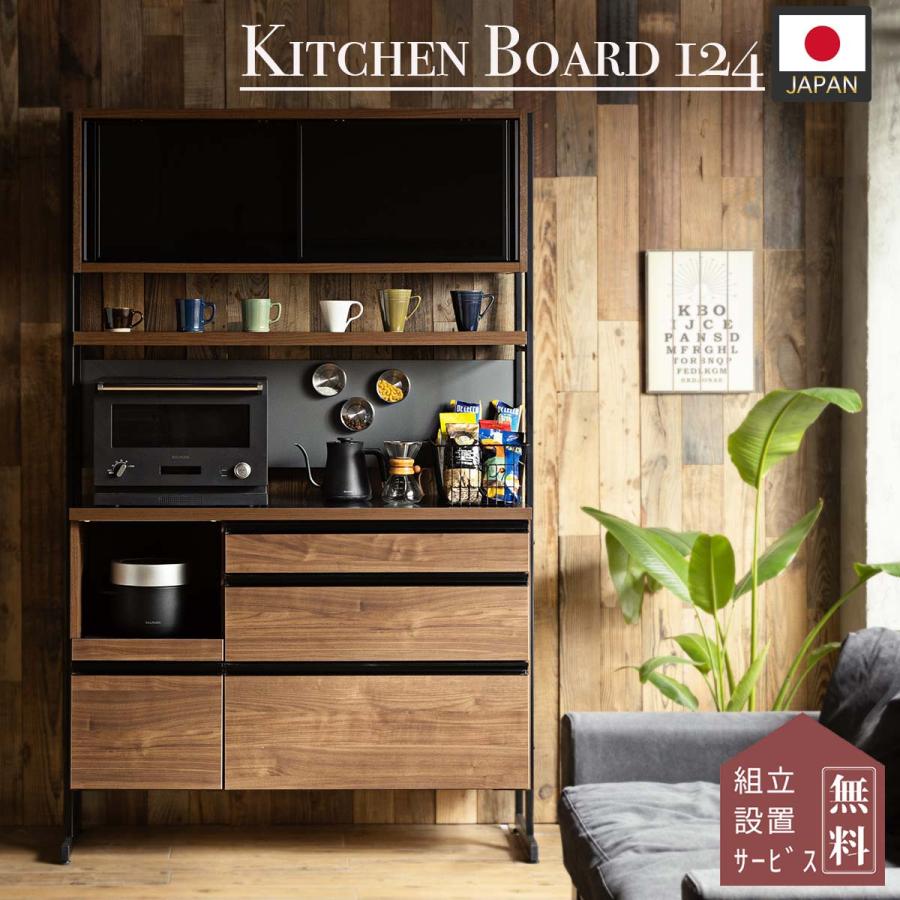 【開梱設置付き】キッチンボード おしゃれ 食器棚 幅120 木製 ハイタイプ 日本製 ダイニングボード レンジボード キッチン棚 レンジ台 高級 ウォールナット オーク 国産 収納 120