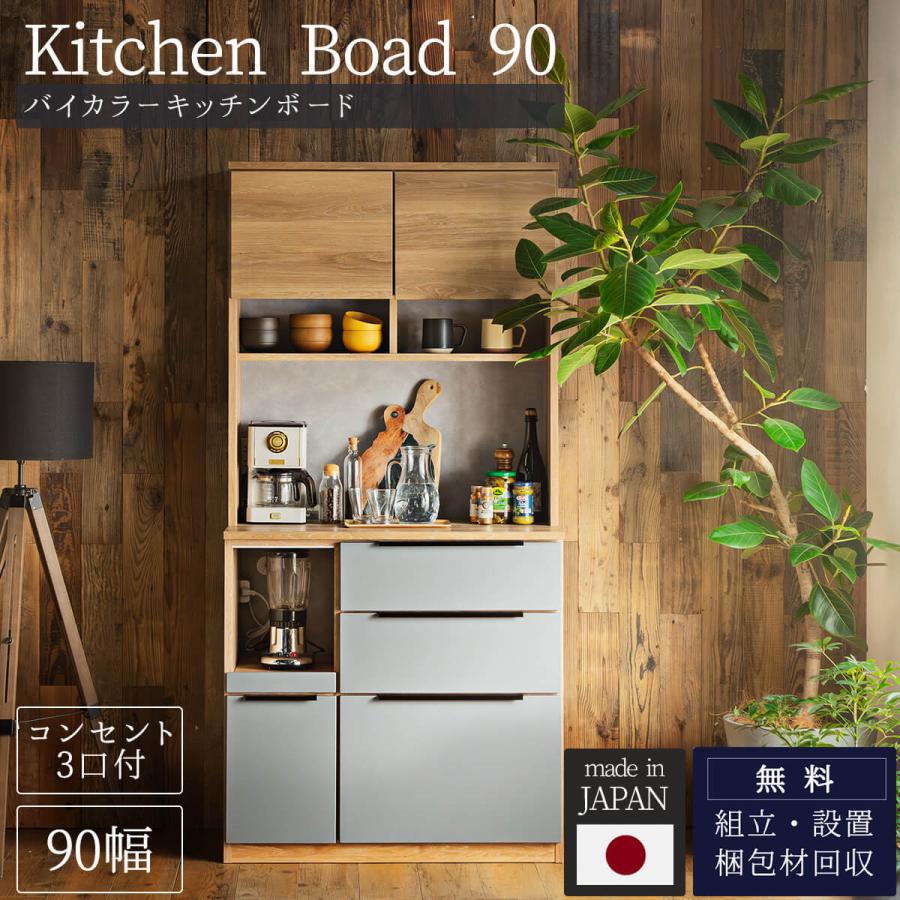 キッチンボード 国産 食器棚 幅90cm 幅120cm ハイタイプ グレージュ グレー 木目 ウッド調 ブラウン ナチュラル