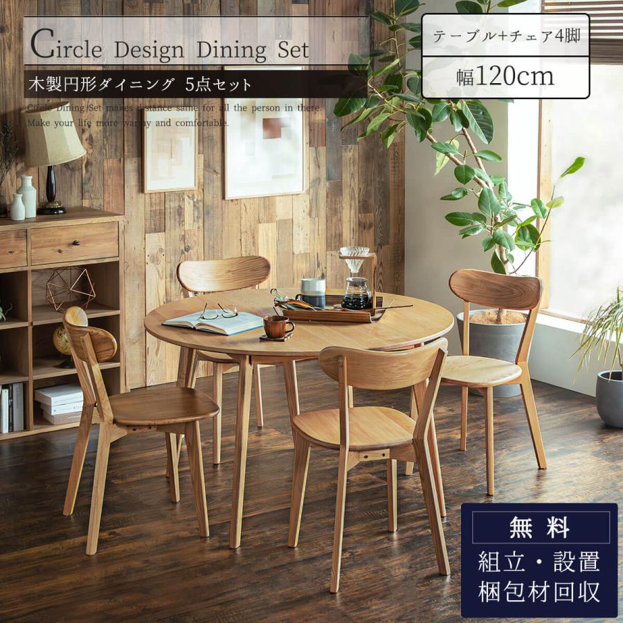 ダイニングテーブルセット 4人掛け 開梱設置付 北欧 おしゃれ おすすめ ダイニングセット 5点セット 4人掛け チェアー 円形 天然木 ナチュラル モダン オーク材 ダイニング