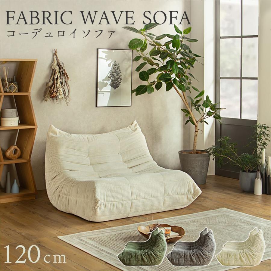 圧縮 ソファ コーデュロイ 2P 120cm グレー ベージュ グリーン ギャザー リラックス ソファー ふかふか コンパクト ローソファー ファブリック もこもこ デザイナーズ ロータイプ フロアソファ