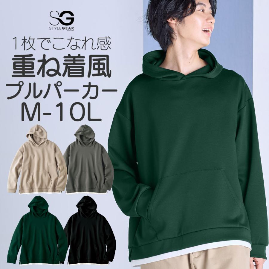 - プルパーカー 長袖 オーバーサイズ 重ね着風