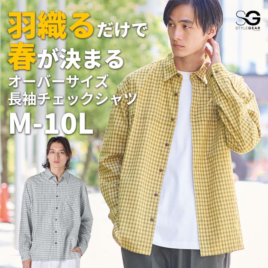 - カジュアルシャツ オーバーサイズ 長袖 チェックシャツ