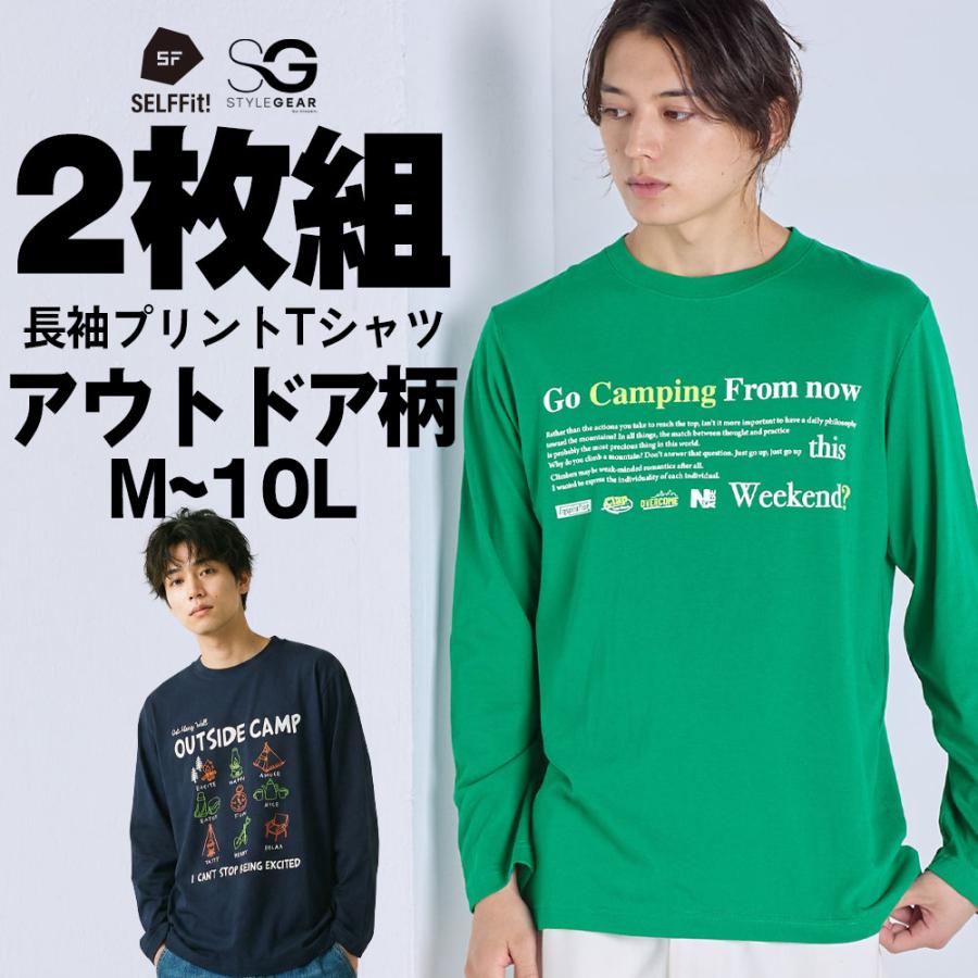 - Tシャツ 長袖 プリント 長袖Tシャツ 2枚組 アウトドア柄