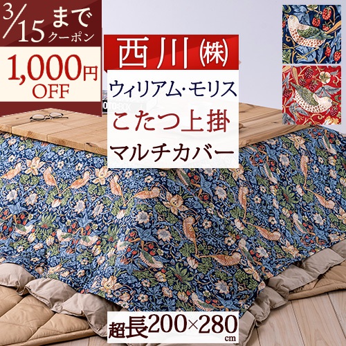 人気のウィリアム・モリスのデザイン。いちご泥棒のマルチカバー。あると便利な一枚です。