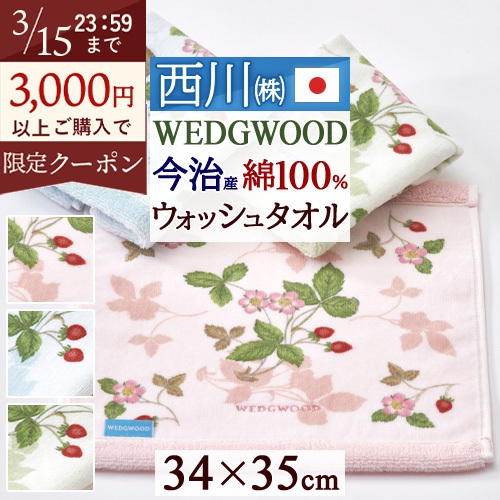 人気ブランド「ウェッジウッド」のウォッシュタオル。贈り物にも喜ばれる、西川株式会社の今治産タオルです。