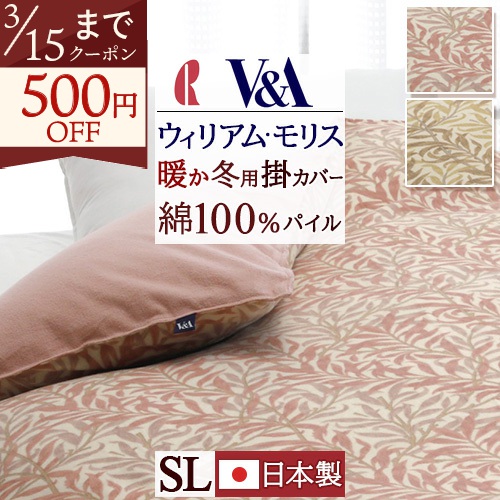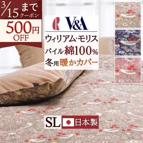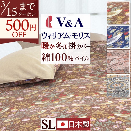 肌に触れる部分はパイル綿100%の冬用掛けカバーです。ウィリアムモリスの世界観が感じられるデザイン。
