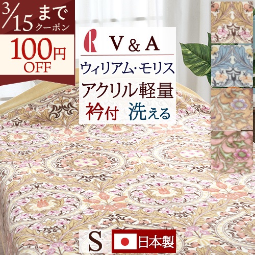 軽くて暖かい、やさしい肌触りのアクリル毛布。ウィリアムモリスの世界観が感じられるデザイン。