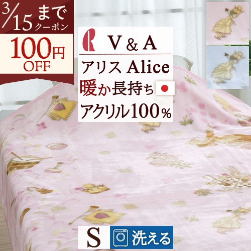 軽くて暖かい、やさしい肌触りの毛布。アリスの世界観が感じられるデザインです。