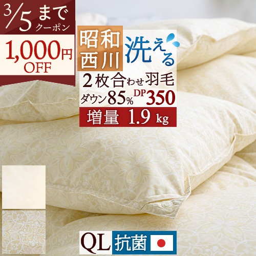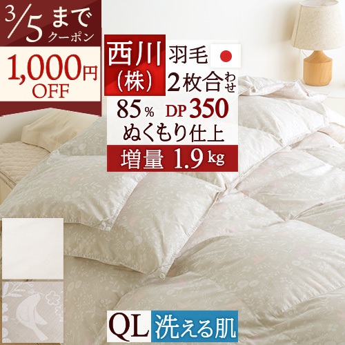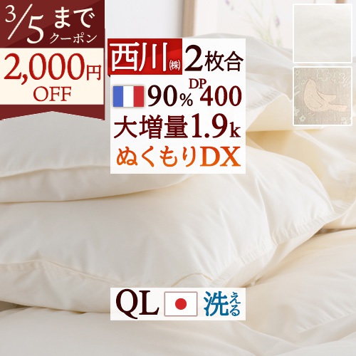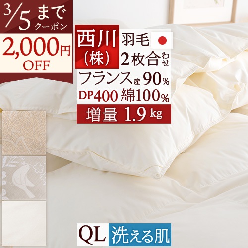 厳選フランス産ダウンを2.0kg!100g増量のふわふわの暖かさ、安心品質、西川の日本製。