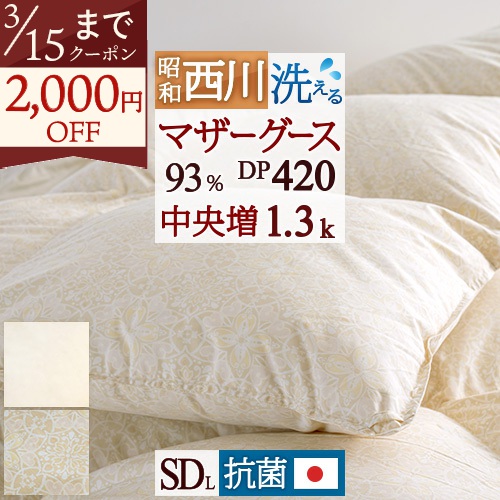 ダウンパワー420!側生地は綿混の軽量生地、ホワイトマザーグース。うれしい日本製の商品です!