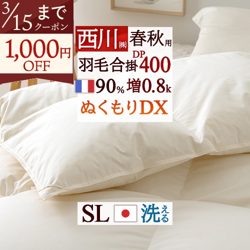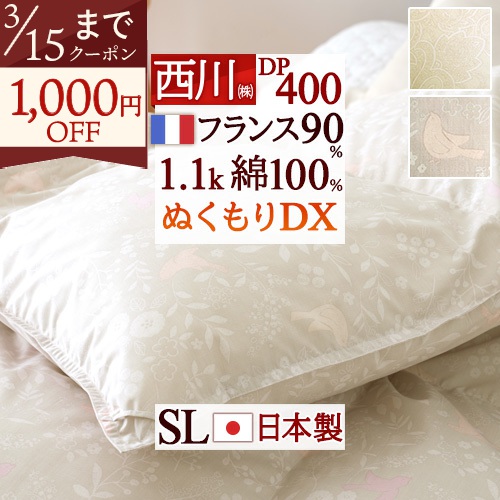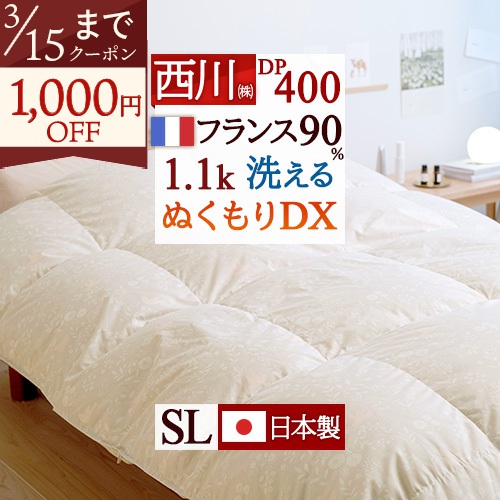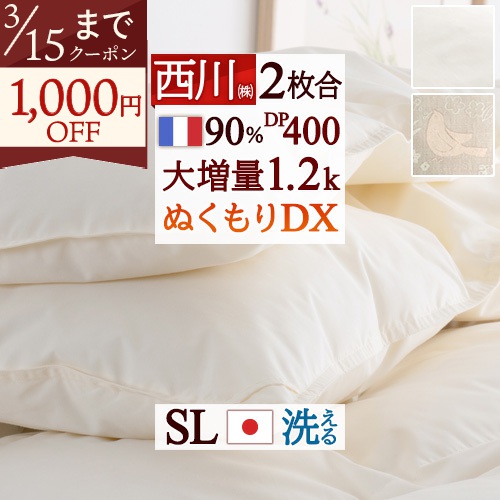 DP400!フランス産ダウンを大増量1.3kg、ぬくもり仕上げでさらに暖かい!