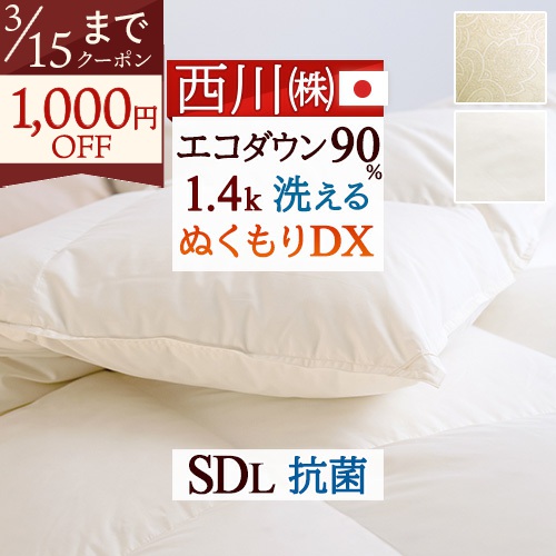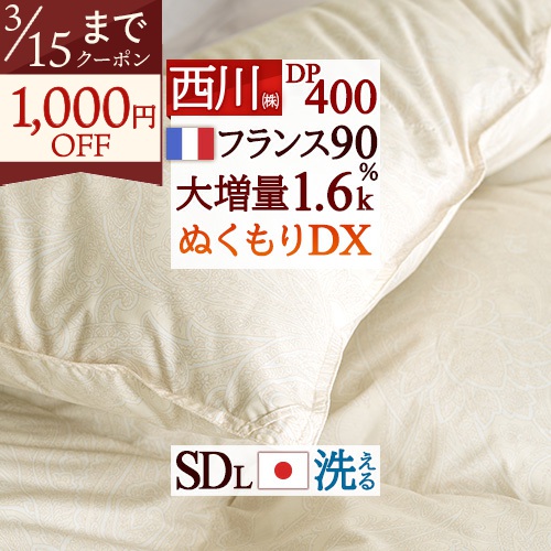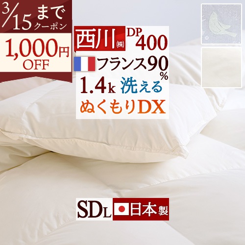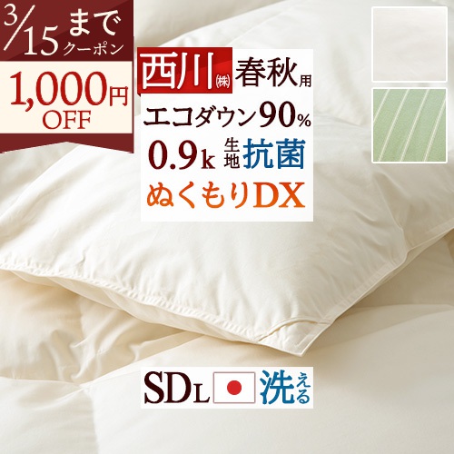西川のコインランドリーで洗える羽毛布団!しっかり1.5kg入った増量タイプの羽毛布団です!