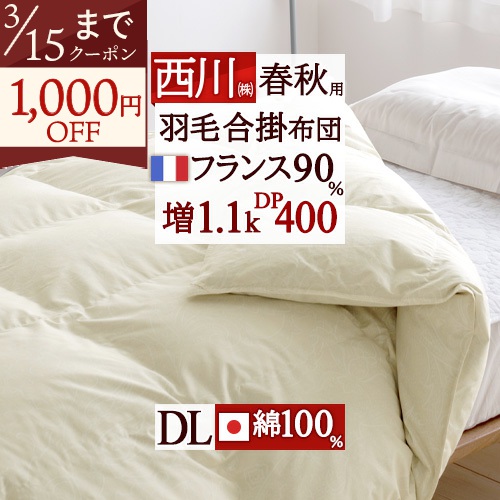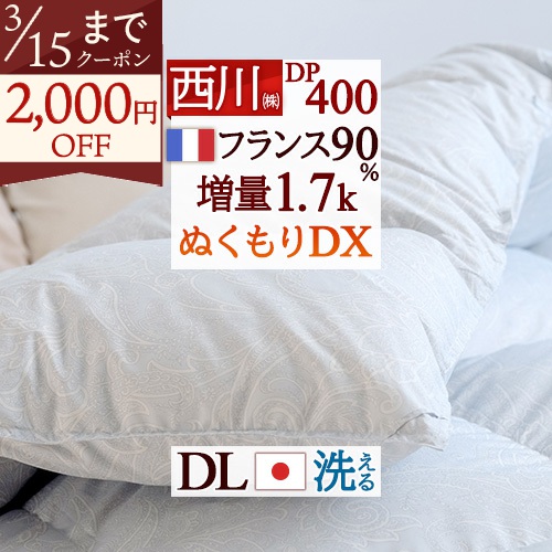 厳選フランス産ダウンを1.7kg!100g増量のふわふわの暖かさ、安心品質、西川の日本製。