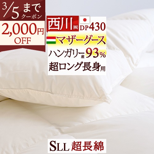 長身用をお探しの方にもマザーグースできまり!ゆっくりお休みして頂けるロングサイズ、安心西川の日本製。