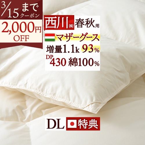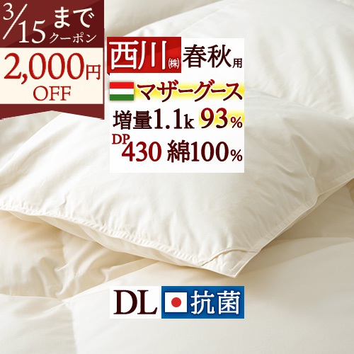 人気のハンガリー産マザーグースダウン93%!超長綿のやわらかな肌触りで贅沢に仕上がりました。