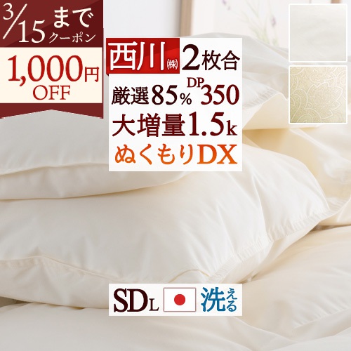 西川のコインランドリーで洗える羽毛布団!しっかり1.5kg入った増量タイプの羽毛布団です!