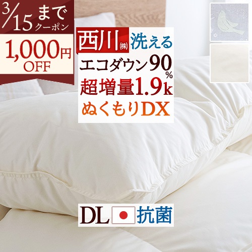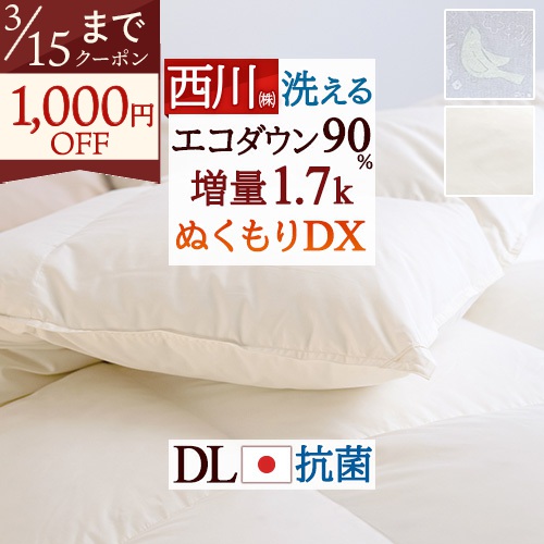厳選フランス産ダウンを1.7kg!100g増量のふわふわの暖かさ、安心品質、西川の日本製。