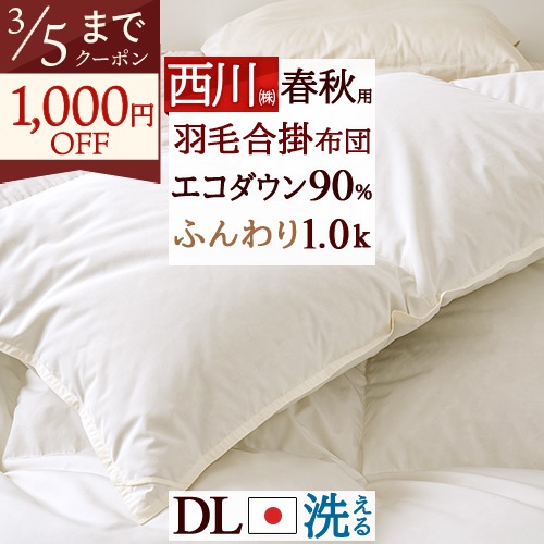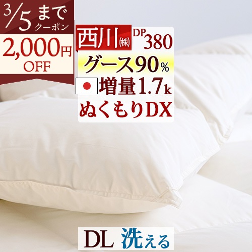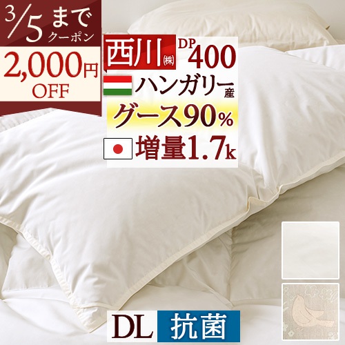 厳選フランス産ダウンを1.7kg!100g増量のふわふわの暖かさ、安心品質、西川の日本製。