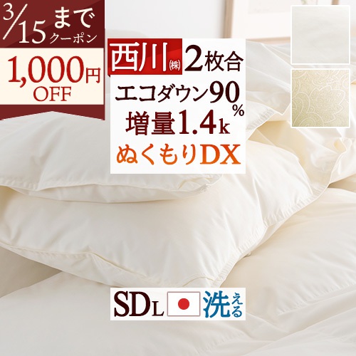 西川のコインランドリーで洗える羽毛布団!しっかり1.5kg入った増量タイプの羽毛布団です!