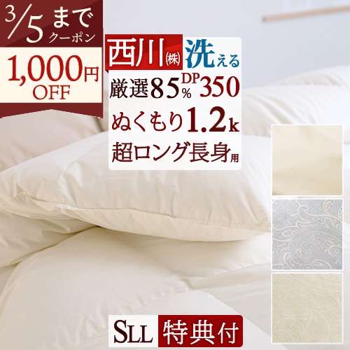 西川のコインランドリーで洗える羽毛布団!背の高い方もゆっくりお休みして頂けるロングサイズです!