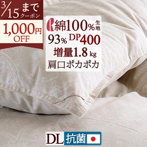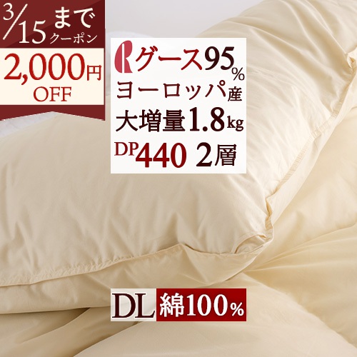 フランス産ダウンを大増量1.8kg ぬくもり仕上げでさらにあたたかい!