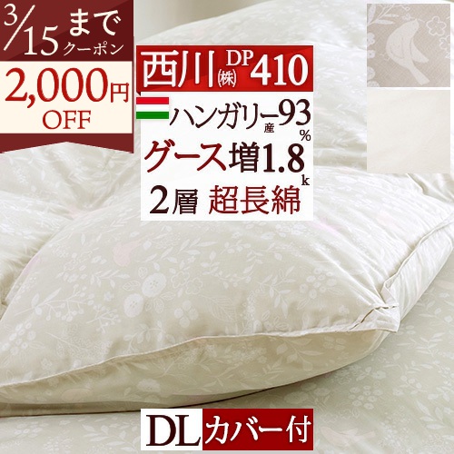 厳選フランス産ダウンを1.8kg!100g増量のふわふわの暖かさ、安心品質、西川の日本製。