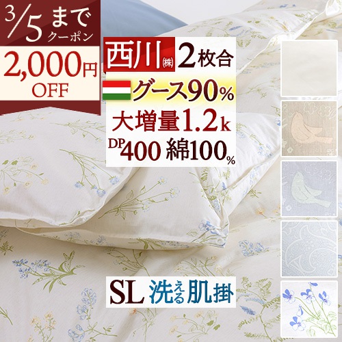 グースは弾力性があり、保温力も抜群。オールシーズン使えてとっても便利です!しかも肌布団は洗えるツインダウン。