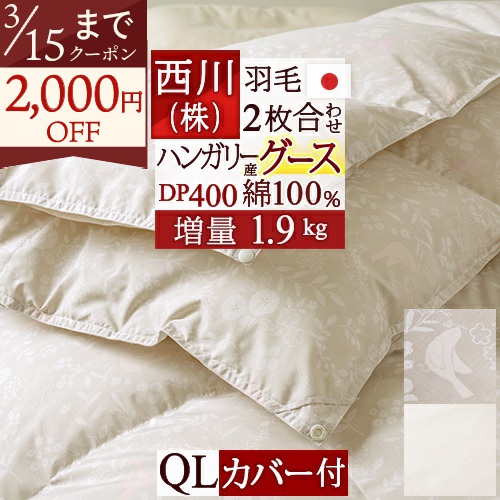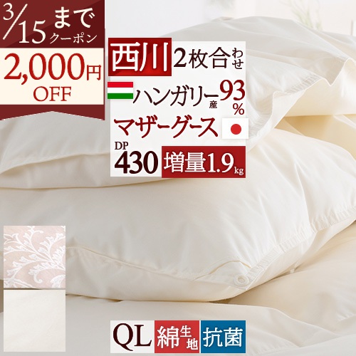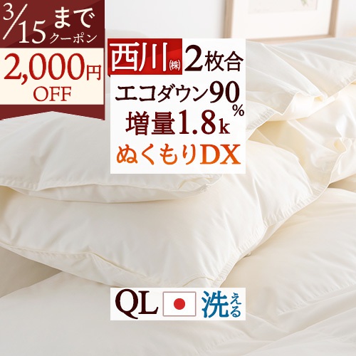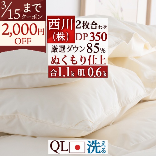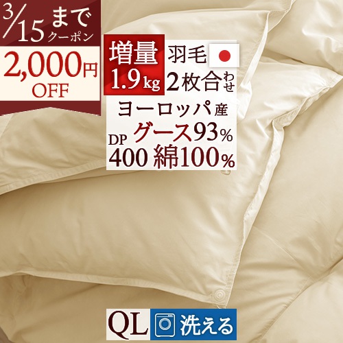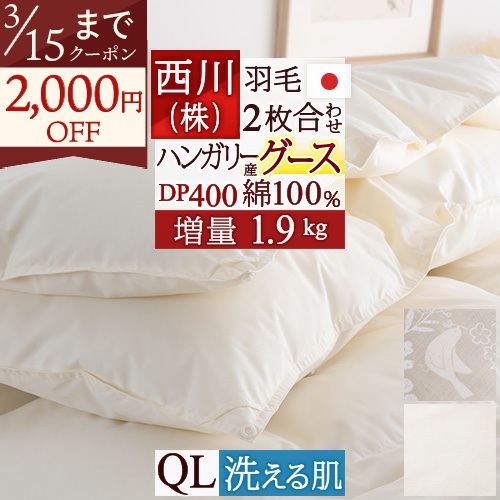 京都の老舗・ロマンス小杉の2枚合わせの洗える羽毛布団です。