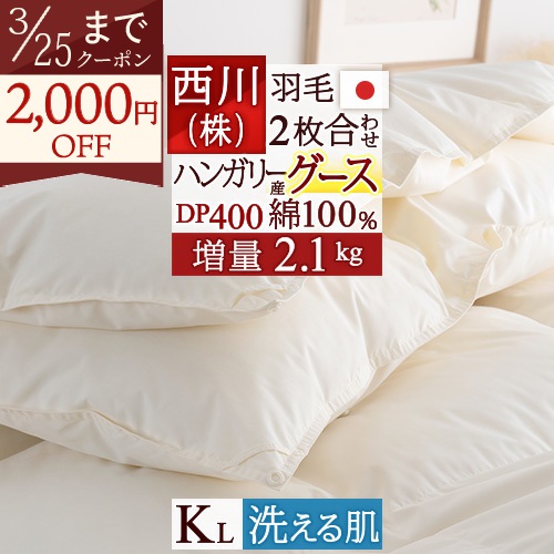 グースは弾力性があり、保温力も抜群。オールシーズン使えてとっても便利です!しかも肌布団は丸洗いOKのツインダウン。