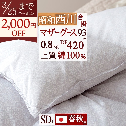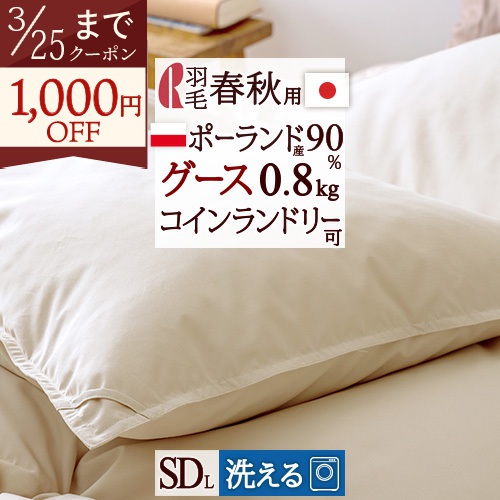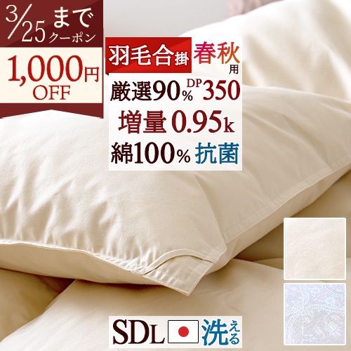 コインランドリー対応の羽毛合掛け布団!春から秋口、季節の変わり目におすすめです。