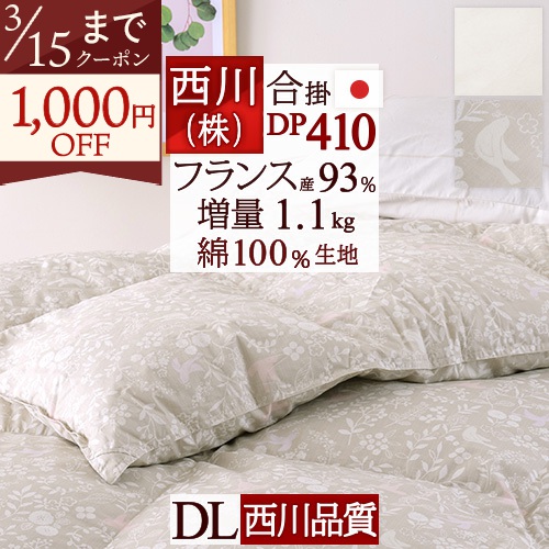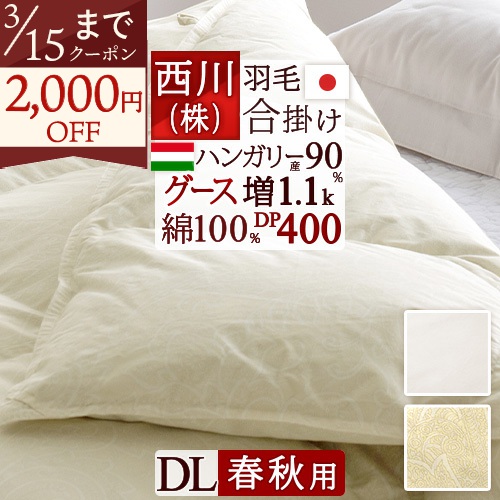 グースダウン増量タイプの合掛け布団です。春から秋口の季節にちょうど良い合掛け布団です。