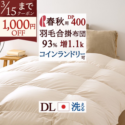 春秋に丁度いい羽毛合掛け布団ダブルサイズ、コインランドリー対応です。