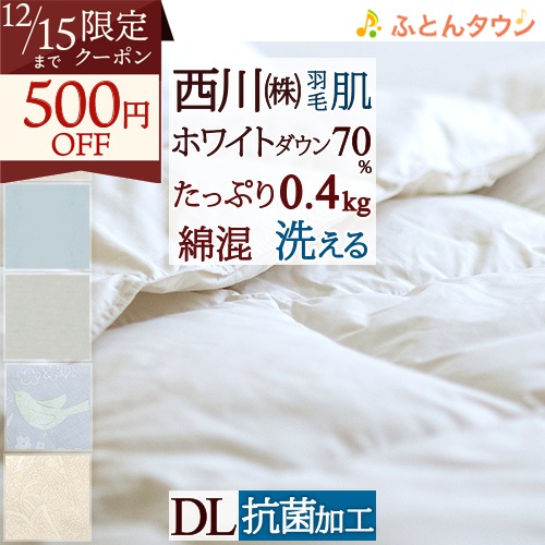 増量タイプ!綿100%の側生地で吸湿性も抜群!西川厳選のイギリス産ホワイトダウン。