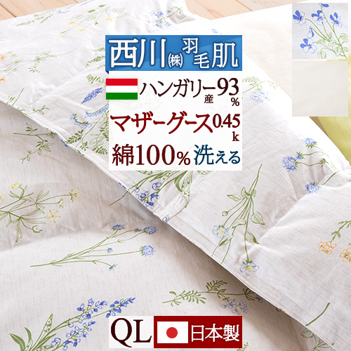 西川厳選・ハンガリー産グースダウンの肌布団です。側生地綿100%で弾力性のあるグースはおススメです!