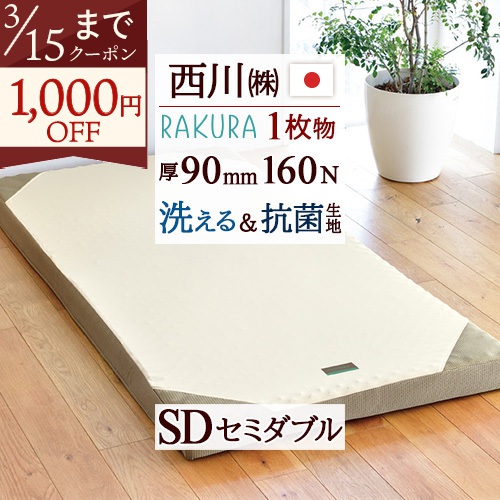 西川の健康サポートマットレス『ラクラ』シリーズのベッドマットレス。圧縮梱包でコンパクトにお届け。